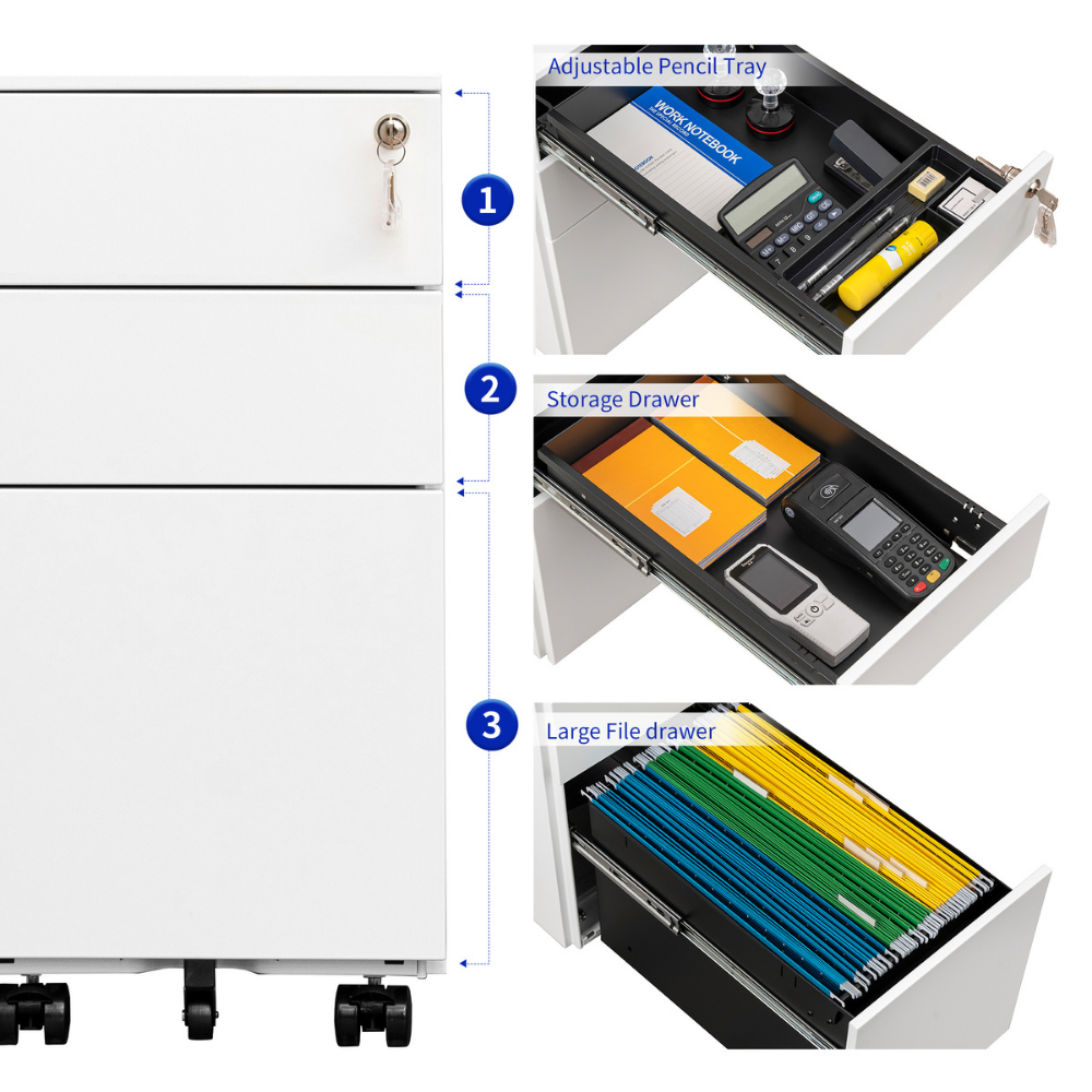 AG metal Mobile Pedestal 2 drawers and one filing drawer.