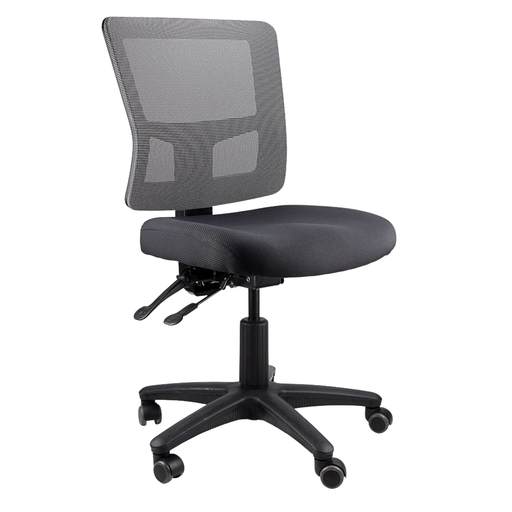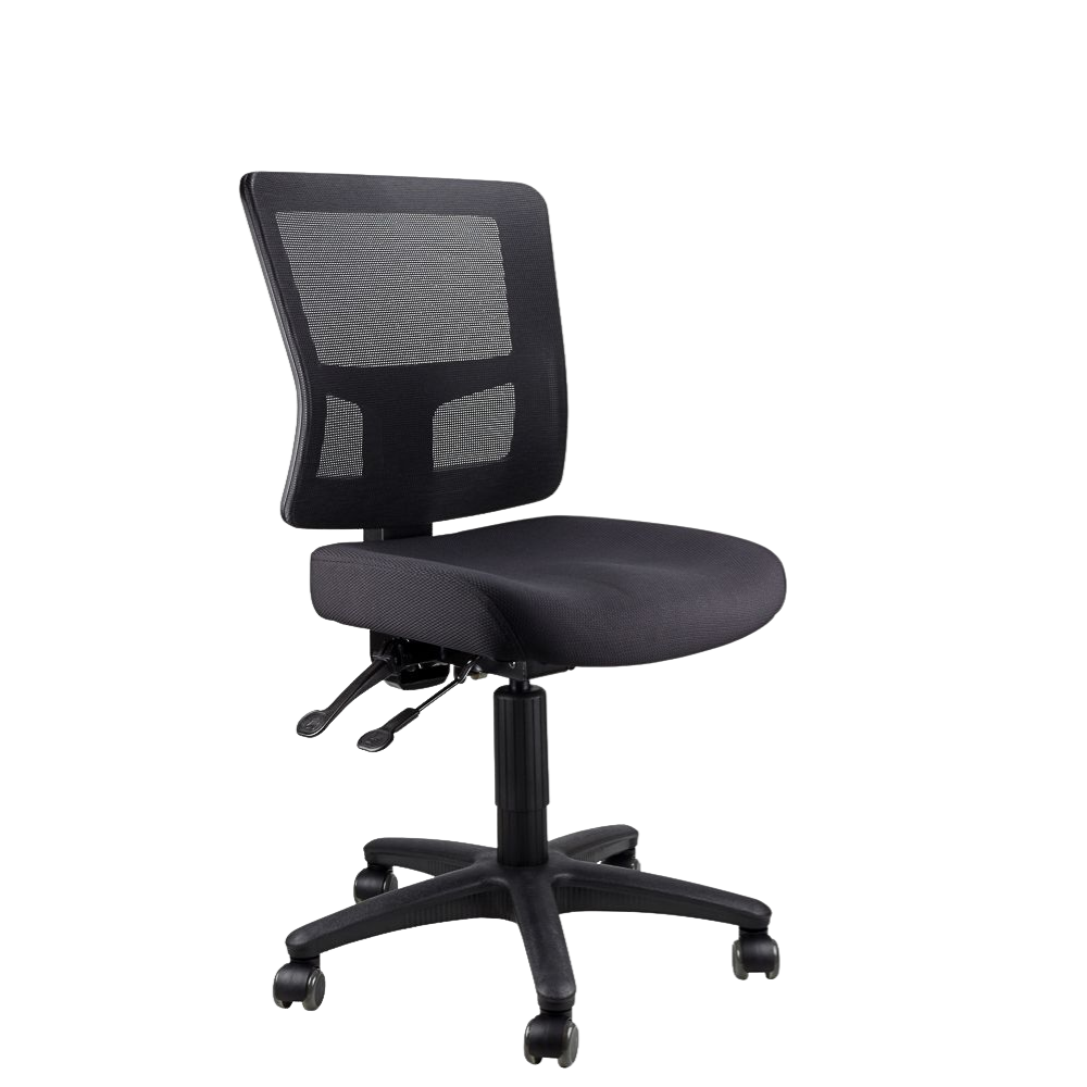 Fully ergonomic, available with or without armrests, 2 lever fully ergonomic mechanism, Stitched seat, Moulded foam seat cushion, 'Wrap around' mesh back, Soft tyre 50mm castors